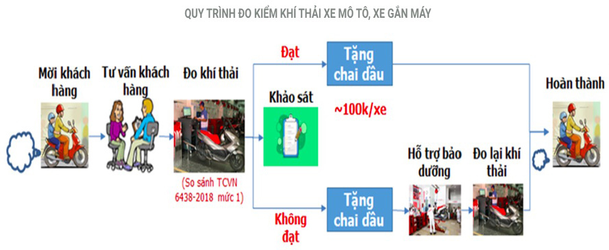 Dự kiến, có khoảng 5.000 xe được thực hiện kiểm tra khí thải miễn phí, trong đó có phân bổ cho các hãng là: Honda 4.200 xe; Yamaha 800 xe; SYM 100 xe; Suzuki 50 xe và Piaggio 50 xe.