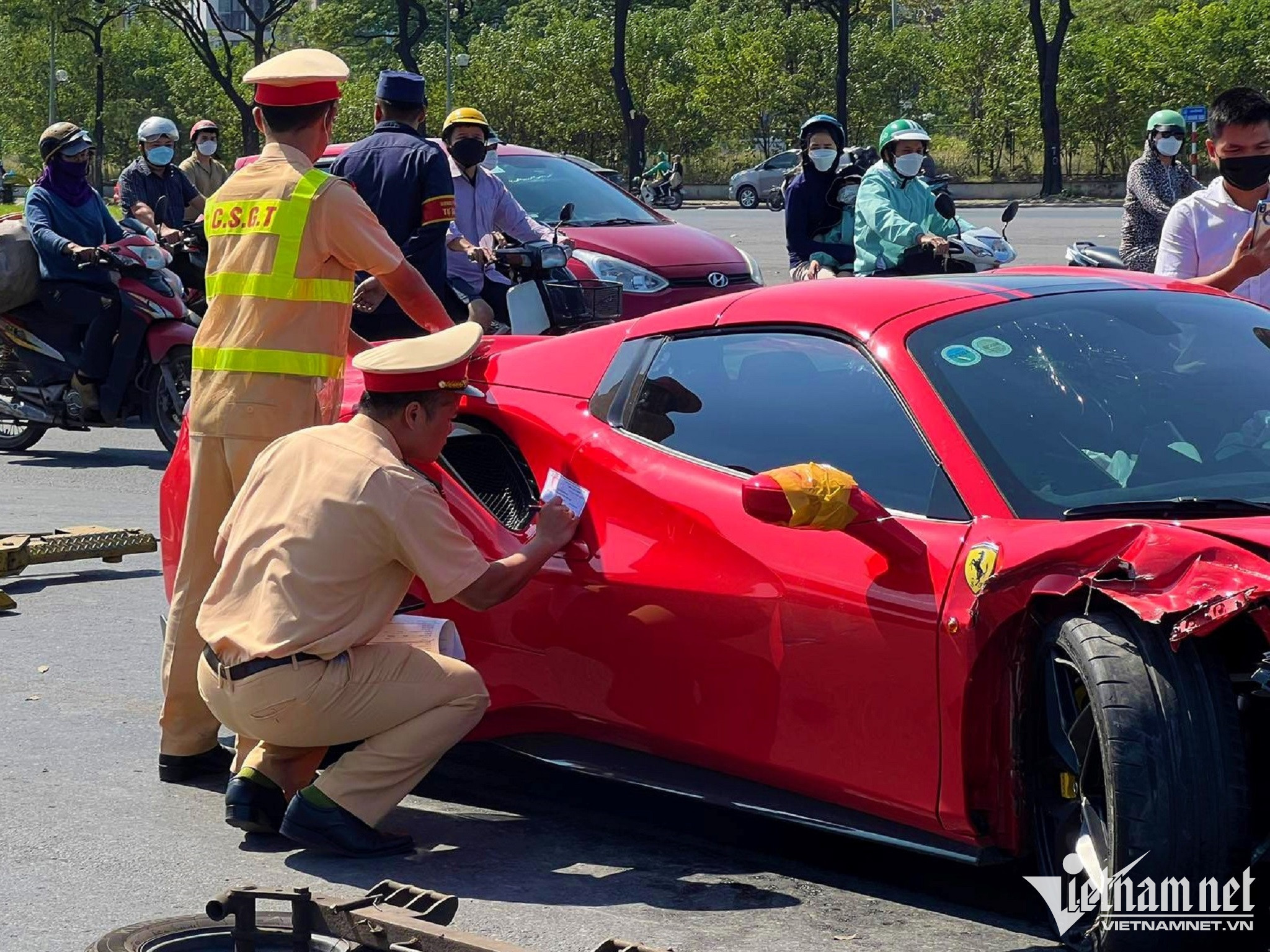 Vụ tai nạn liên quan đến xe Ferrari vào chiều ngày 31/10, trên đường Lê Quang Đạo (Hà Nội) đang gây chú ý của dư luận. Thời điểm xảy ra tai nạn, chiếc ô tô nhãn hiệu Ferrari mang BKS 80-3xx-NG-xx được cho là do anh V. (trú tại Nam Từ Liêm, Hà Nội) điều khiển bất ngờ va chạm với xe máy đi phía trước, cùng chiều đường.