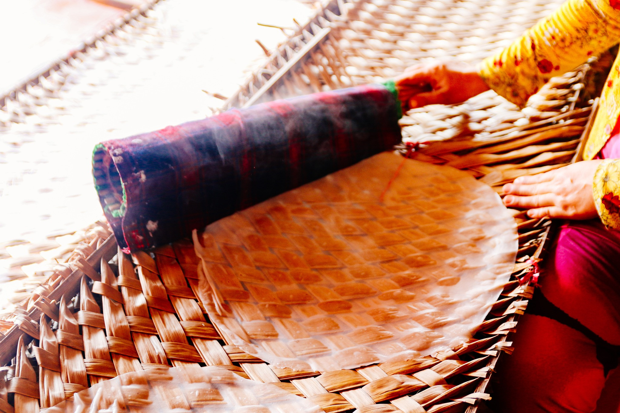 Theo người dân địa phương, bí quyết để tráng bánh ngon, mỏng và không bị nát là cần đảm bảo lửa nhỏ và tráng bánh đều, nhanh tay. Bánh tráng được hấp bằng hơi nước khoảng 15 giây là chín.