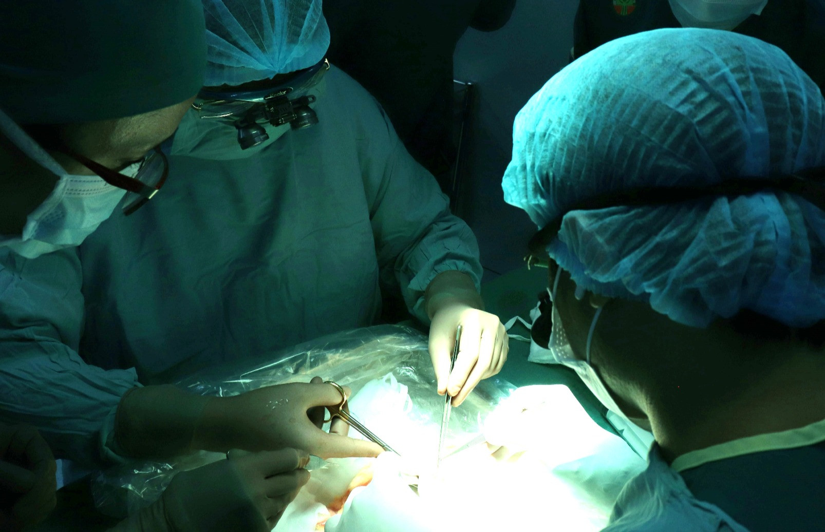 Trong phòng mổ im ắng, tất cả thầy thuốc cúi đầu. Một bác sĩ khoa Gây mê hồi sức đại diện ê-kip lấy tạng bày tỏ những lời tri ân tới người đàn ông 57 tuổi.