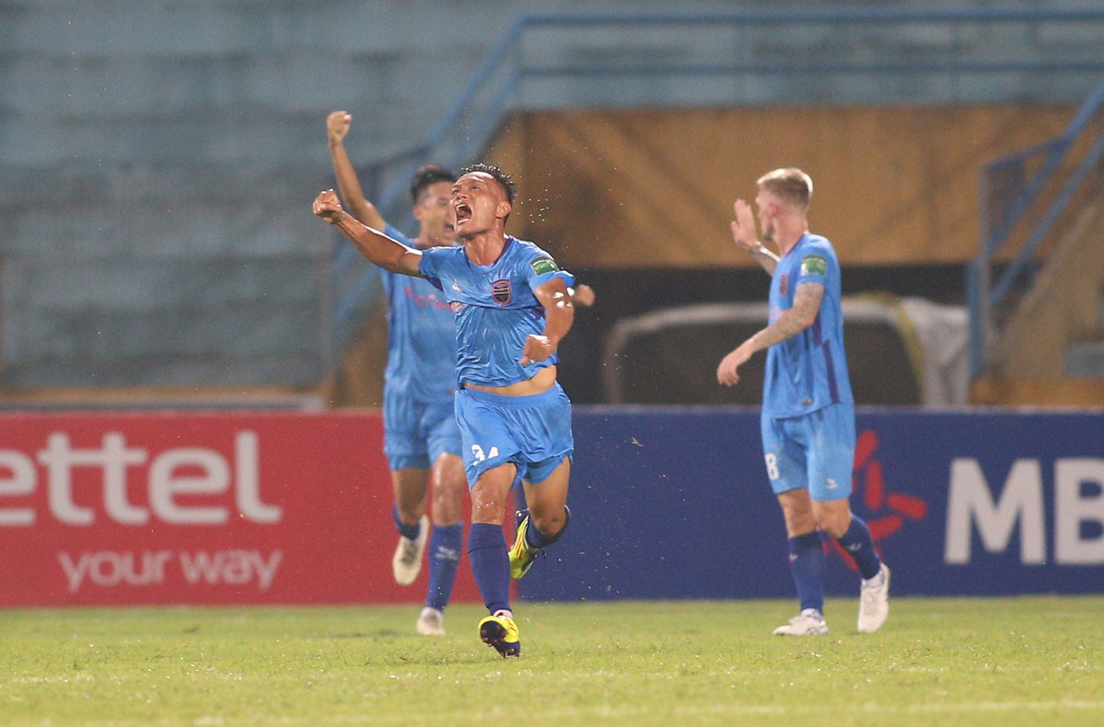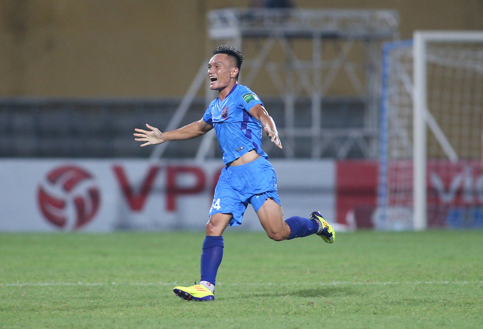 Hậu vệ Quang Hùng có bàn thắng đầu tiên ở sân chơi V-League sau hơn 9 năm vắng bóng vì án phạt treo giò vĩnh viễn của VFF.