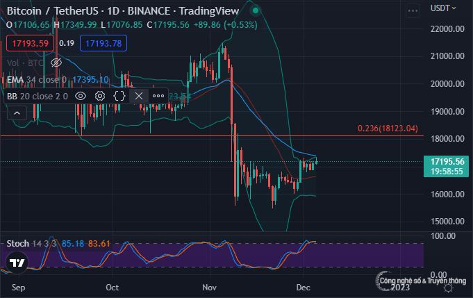 Đây là quãng tăng giá hiếm hoi của Bitcoin kể từ đầu tháng 11, khoảng thời gian diễn ra sự đổ vỡ của FTX - sàn giao dịch tiền mã hóa lớn thứ hai thế giới. Điều này cho thấy có vẻ như giá Bitcoin đang có dấu hiệu của sự phục hồi. Bitcoin nhiều khả năng sẽ kiểm tra lại hai mức giá 17.900 USD và 18.500 USD.