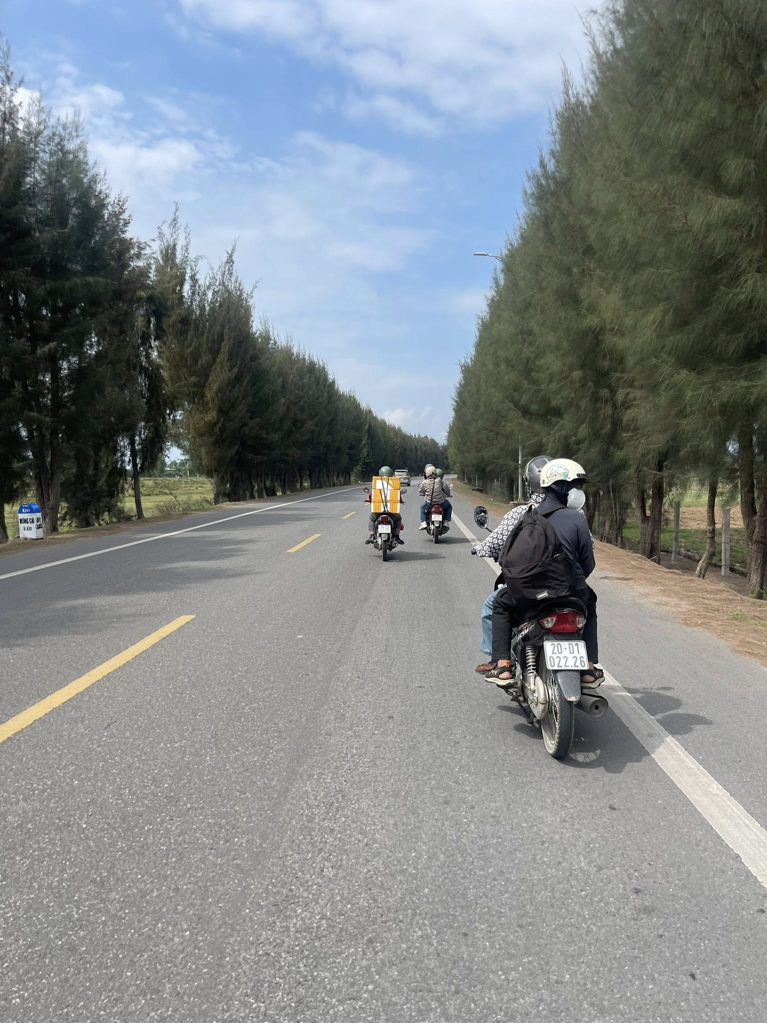 Suốt 10 tiếng di chuyển, họ chỉ dừng chân 1 lần để nghỉ ăn trưa, còn lại đi thẳng cho kịp đến Trà Cổ và tắm biển vào lúc chiều muộn.