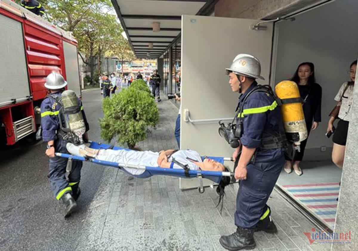 Đám cháy xuất phát từ vị trí ổ điện trong phòng họp tầng 6 và nhanh chóng lan ra các khu vực xung quanh, tiềm ẩn nguy gây cháy lan toàn bộ khu vực tầng 6 và có 4 người mắc kẹt bên trong.