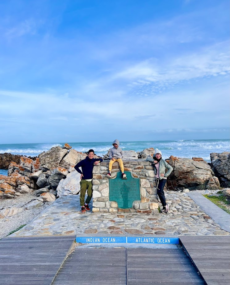Gia đình Hip cũng đã tới check-in điểm cực Nam của châu Phi - Mũi Agulhas ở Nam Phi.