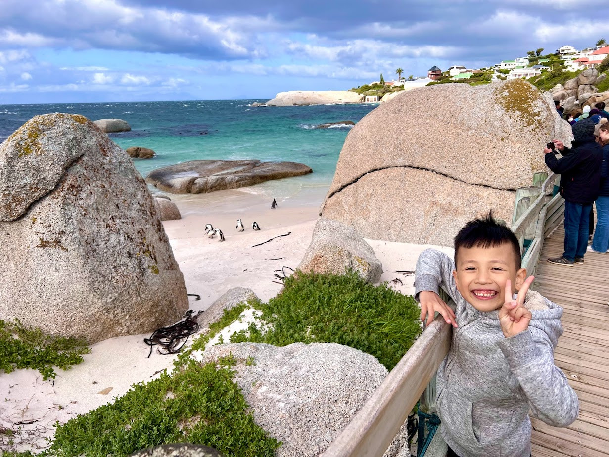 Ngoài ra, nhắc đến chim cánh cụt, mọi người thường nghĩ tới Nam Cực hay những nơi quanh năm băng tuyết, nhưng thực tế, bờ biển xinh đẹp Boulders Beach ở Western Cape là ngôi nhà của hàng nghìn chú chim cánh cụt Nam Phi đáng yêu. Hip và chị gái thích thú khi lần đầu ngắm nhìn những chú chim chân ngắn lạch bạch nô đùa hay bón cho nhau ăn.