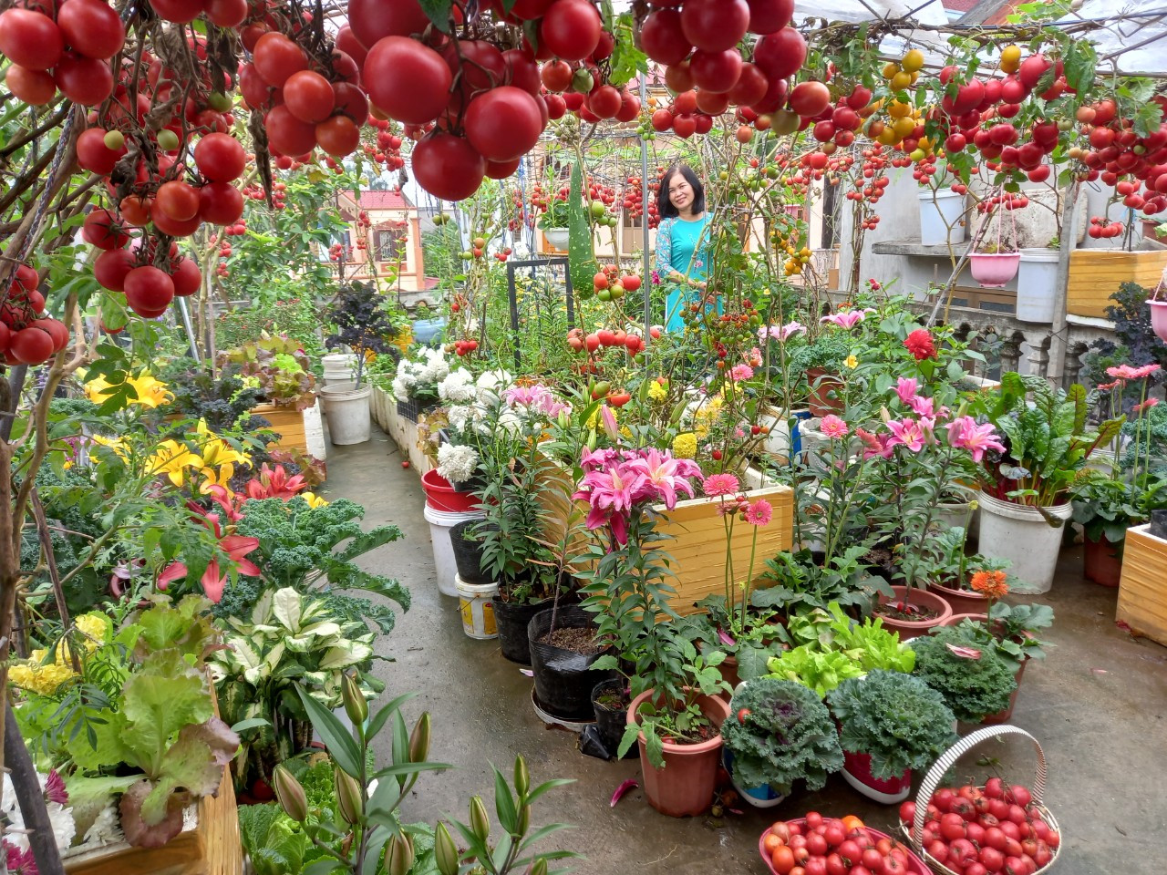Hỏi về bí kíp để có vườn sân thượng cà chua bạch tuộc đẹp, chị Hoàn chi sẻ cách làm riêng của mình.