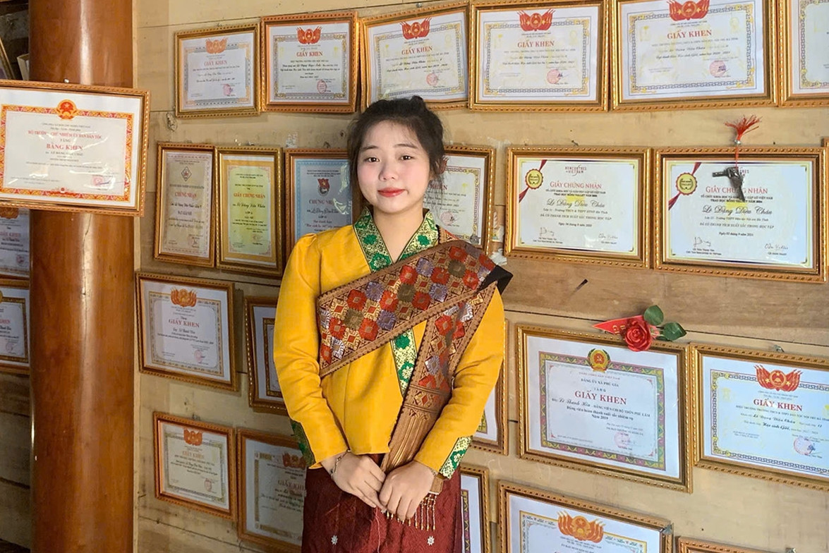 Không dừng lại ở việc giữ nghề, bà Saphia còn truyền nghề cho thế hệ thứ 5 - cháu gái Shakina, từ khi cô bé 12 tuổi. Giờ đây, ở tuổi 17, với đôi bàn tay khéo léo, cô gái này đã cho ra đời nhiều sản phẩm thổ cẩm tinh tế phục vụ sinh hoạt hằng ngày.