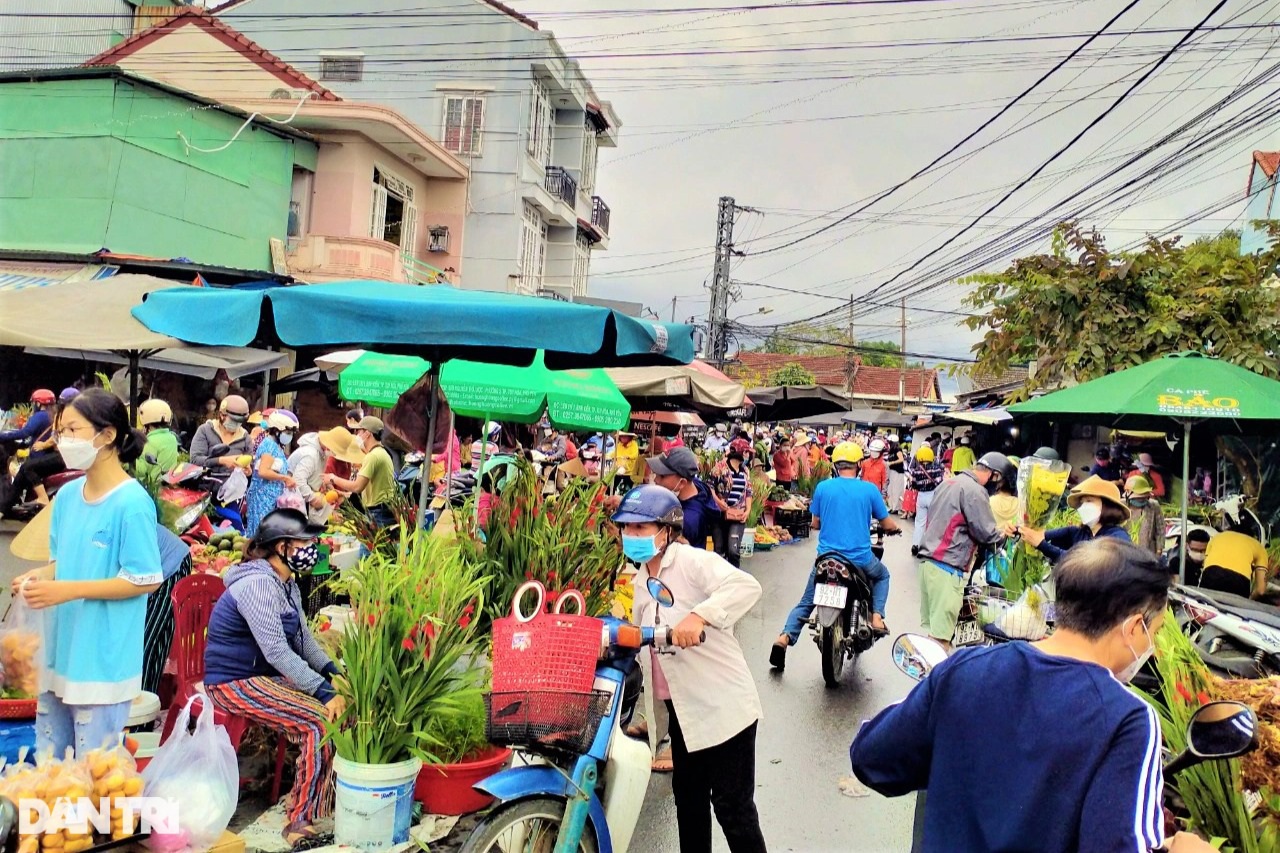 Không khí sắm Tết tại các chợ vào ngày 28 Tết khá tấp nập. Tiểu thương tràn cả xuống đường để phục vụ khách.