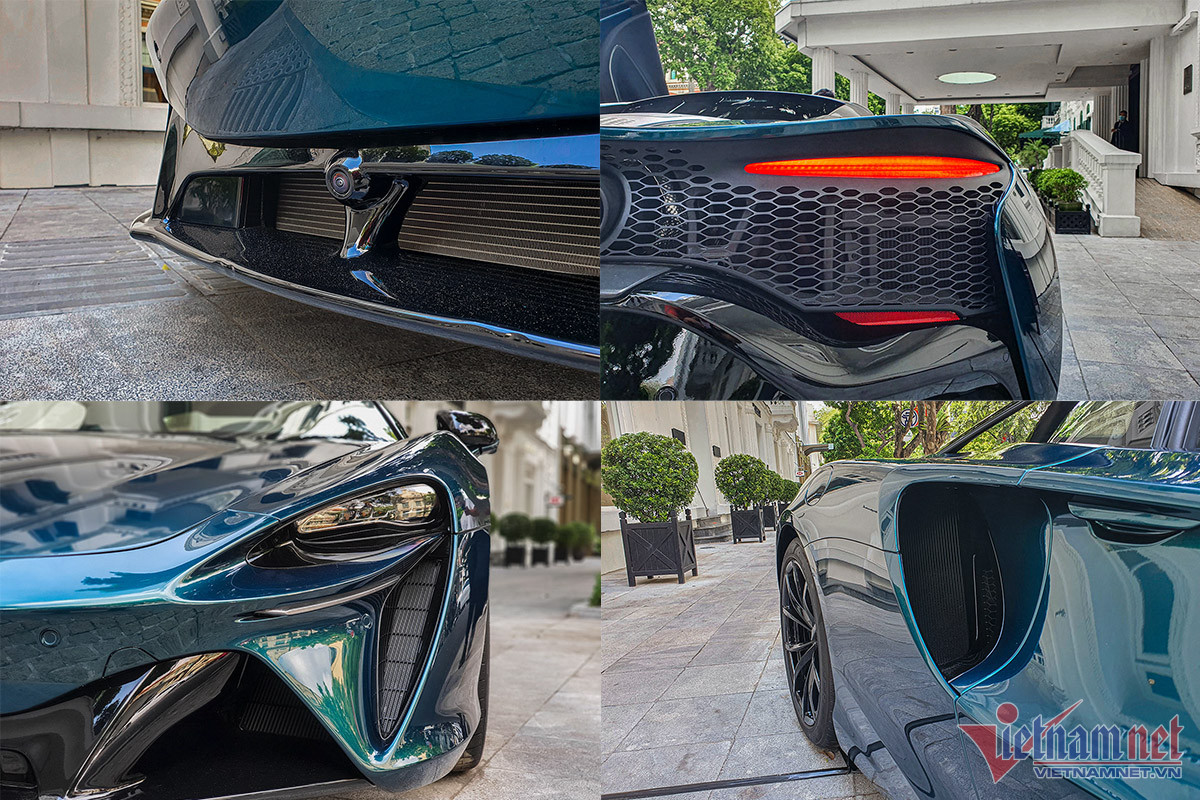 McLaren Artura là mẫu siêu xe hoàn toàn mới đến từ thương hiệu xe thể thao Anh quốc, được sản xuất với mục đích thay thế cho mẫu McLaren 570S hiện đã ngừng sản xuất. Xe được nhập khẩu chính hãng và bán ra với mức giá gần 14,7 tỷ đồng.Không sử dụng động cơ V8 như các mẫu xe trước đó của hãng, McLaren Artura chuyển sang sử dụng động cơ hybrid kết hợp giữ động cơ V6 3.0L tăng áp kép và một động cơ điện.Động cơ hybrid này sẽ giúp xe đạt tổng công suất 680 mã lực, mô-men xoắn 720 Nm và có khả năng tăng tốc từ 0-100 km/h trong 3 giây. McLaren Artura cũng có thể di chuyển được quãng đường lên tới 30km với tốc độ tối đa 130 km/h chỉ bằng động cơ điện.McLaren Artura sử dụng hộp số liền mạch tự động 8 cấp ly hợp kép áp dụng công nghệ của xe đua và không có số lùi bằng bánh răng. Thay vào đó, xe sử dụng số lùi bằng mô tơ điện. Điều này cho phép hãng giảm được trọng lượng của xe.Bên cạnh đó, hãng sử dụng nhiều vật liệu carbon kết hợp với hợp kim nhôm để tạo nên bộ khung sườn nhẹ tối ưu cho dòng xe hybrid hiệu suất cao. Nhờ vậy, tổng trọng lượng của McLaren Artura chỉ gần 1,5 tấn.Ngoại hình của Artura vẫn đảm bảo những nét rất đặc trưng của dòng xe hiệu suất cao mang thương hiệu McLaren như đầu xe thấp, khoang lái đặt trước cùng phần đuôi vuốt cao dần về sau. Ngoài ra, rất nhiều hốc gió được bố trí quanh xe để phục vụ mục đích khí động học và làm mát cho động cơ.McLaren Artura cũng có kiểu mở cửa cắt kéo giống như khá nhiều siêu xe khác đang có trên thị trường. Xe sử dụng bộ lốp Pirelli P Zero với kích cỡ 235/35 R19 cho bánh trước và 295/35 R20 cho bánh sau cùng hệ thống phanh đĩa gốm tiêu chuẩn.Động cơ đặt sau với thiết kế ống xả kép ở vị trí trên cao trung tâm của phần đuôi. Điều này khác biệt với người anh em McLaren 570S.Nội thất của McLaren Artura tối giản hóa để tập trung phục vụ cho người điều khiển. Vô lăng hoàn toàn không có phím chức năng. Các tính năng điều chỉnh các thuộc tính của động cơ và khả năng đánh lái đều được đẩy ra 2 bên phía sau vô lăng.Đối thủ trực tiếp hiện tại của McLaren Artura có thể kể tới mẫu siêu xe Ferrari 296 GTB với nhiều điểm tương đồng về hệ truyền động. Theo một số nguồn tin, nhà phân phối thương hiệu Ferrari cũng đang có ý định đưa mẫu xe này về Việt Nam với giá bán khoảng gần 20 tỷ đồng. (Ảnh: Carbuzz)