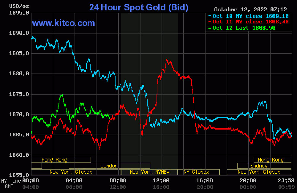 Trên thị trường thế giới, giá vàng hôm nay đã có dấu hiệu hồi phục. Vào lúc 17h54' hôm nay (12/10, giờ Việt Nam), giá vàng giao ngay ở mốc 1.669,6 USD/ounce.