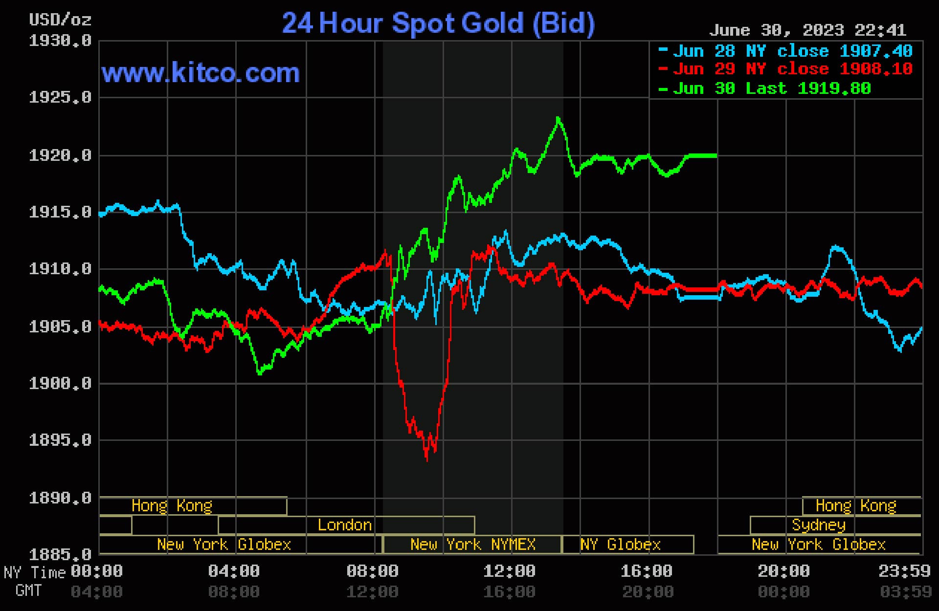 Trên thị trường thế giới, giá vàng giao ngay 30/6 (theo giờ Việt Nam) giao dịch ở mức 1.907 USD/ounce.