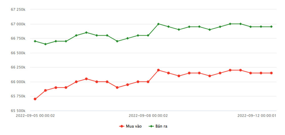 | SJC Hà Nội | 66,15 triệu đồng/lượng | 66,97 triệu đồng/lượng |