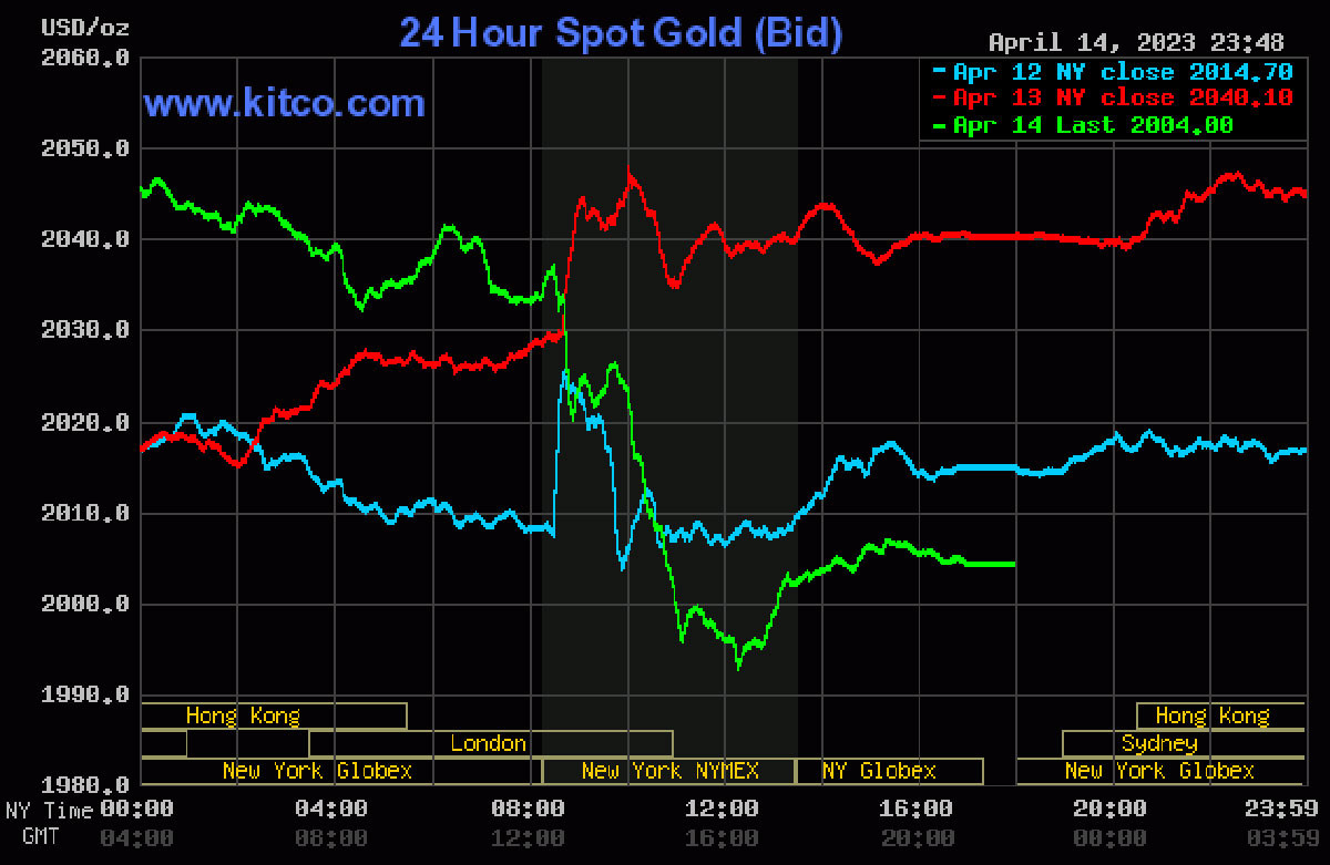 Trên thị trường vàng thế giới, giá vàng giao ngay 14/4 giao dịch ở mức 2.033 USD/ounce. Giá vàng kỳ hạn giao dịch ở mức 2.034 USD/ounce.