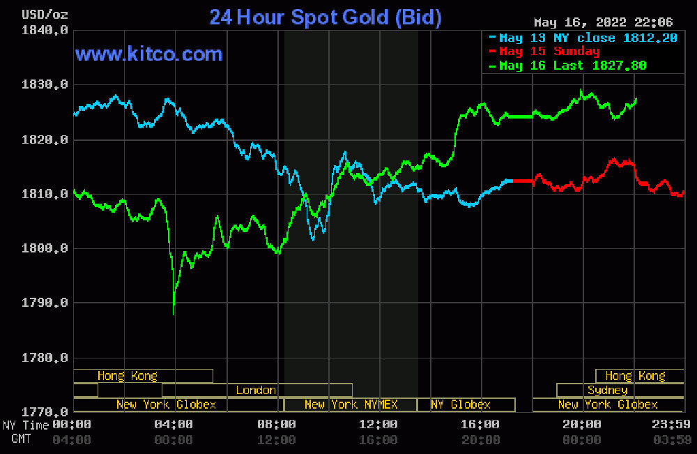 Đêm 16/5 (giờ Việt Nam), giá vàng thế giới giao ngay đứng quanh ngưỡng 1.808 USD/ounce. Vàng giao tháng 6 trên sàn Comex New York ở mức 1.809 USD/ounce.