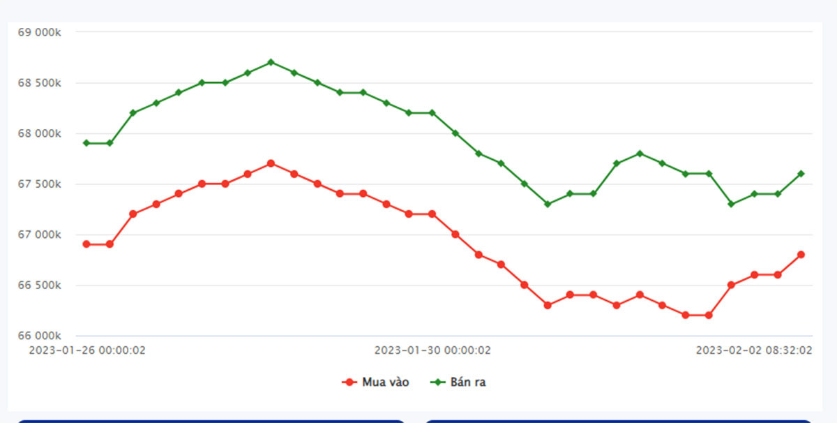 | SJC Đà Nẵng | 66,8 triệu đồng/lượng | 67,62 triệu đồng/lượng |