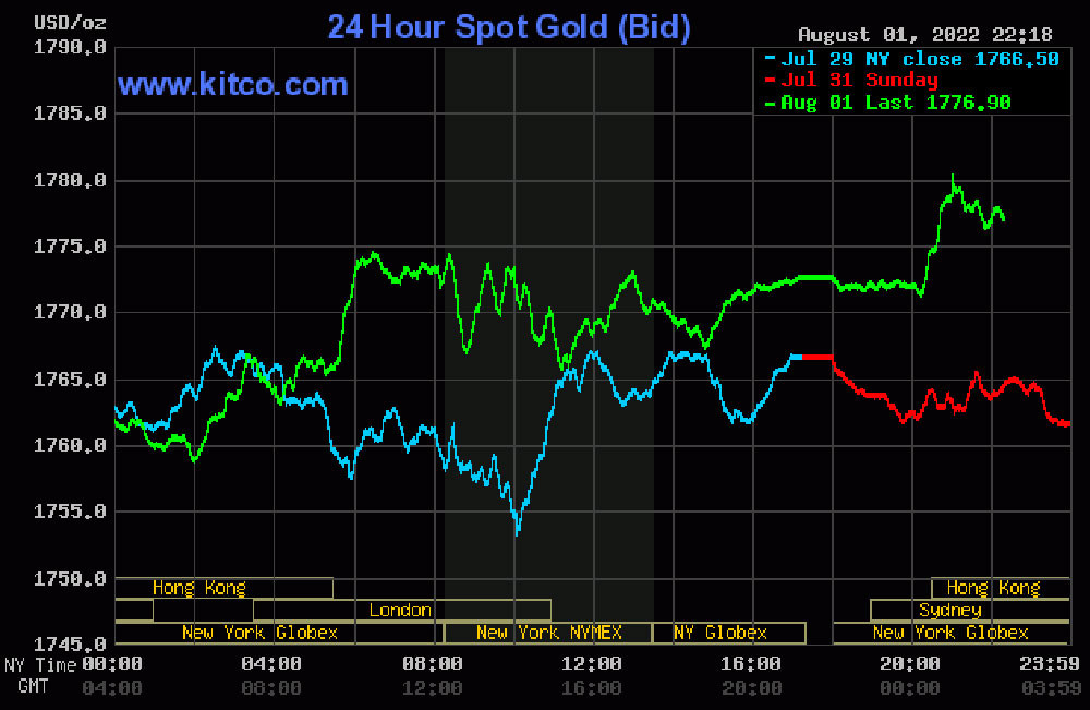 Đêm 01/08 (giờ Việt Nam), giá vàng thế giới giao ngay đứng quanh ngưỡng 1.789 USD/ounce. Vàng giao tháng 8 trên sàn Comex New York ở mức 1.789,60 USD/ounce.