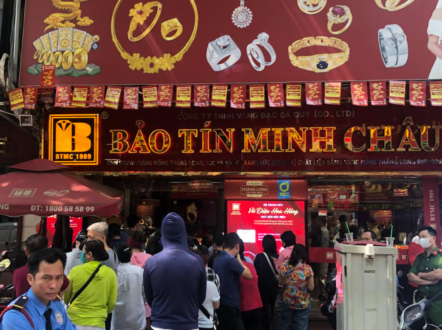 Dù các thương hiệu lớn này đang áp dụng hạn mức bán tối đa 1 chỉ vàng/người trong sáng nay, trước cửa các tiệm vàng, nhiều người vẫn xếp hàng chờ đợi. Tuy không còn cảnh chen chúc như những ngày giá vàng lập đỉnh, không khí mua vào vẫn khá sôi động.