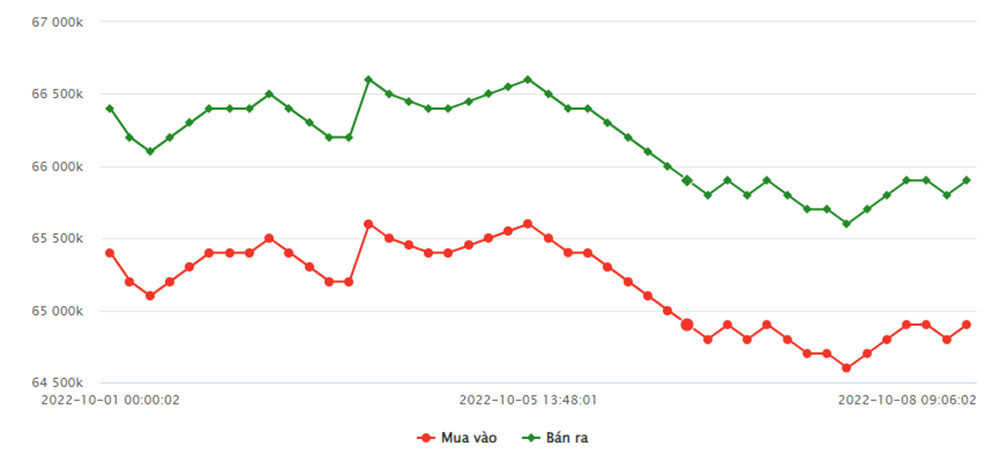 | SJC Hà Nội | 65,5 triệu đồng/lượng | 66,52 triệu đồng/lượng |