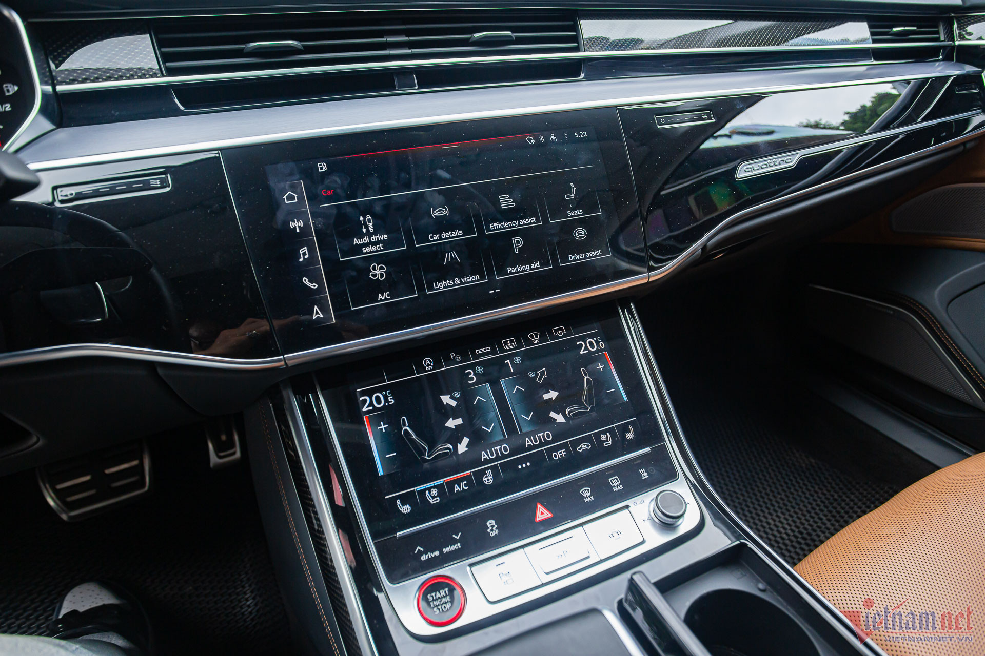 Không gian nội thất kết hợp giữa hai màu đen và nâu, mang đến sự sang trọng và ấm áp hơn cho xe. Đây cũng là tùy chọn trên chiếc S8 còn lại ở Việt Nam.