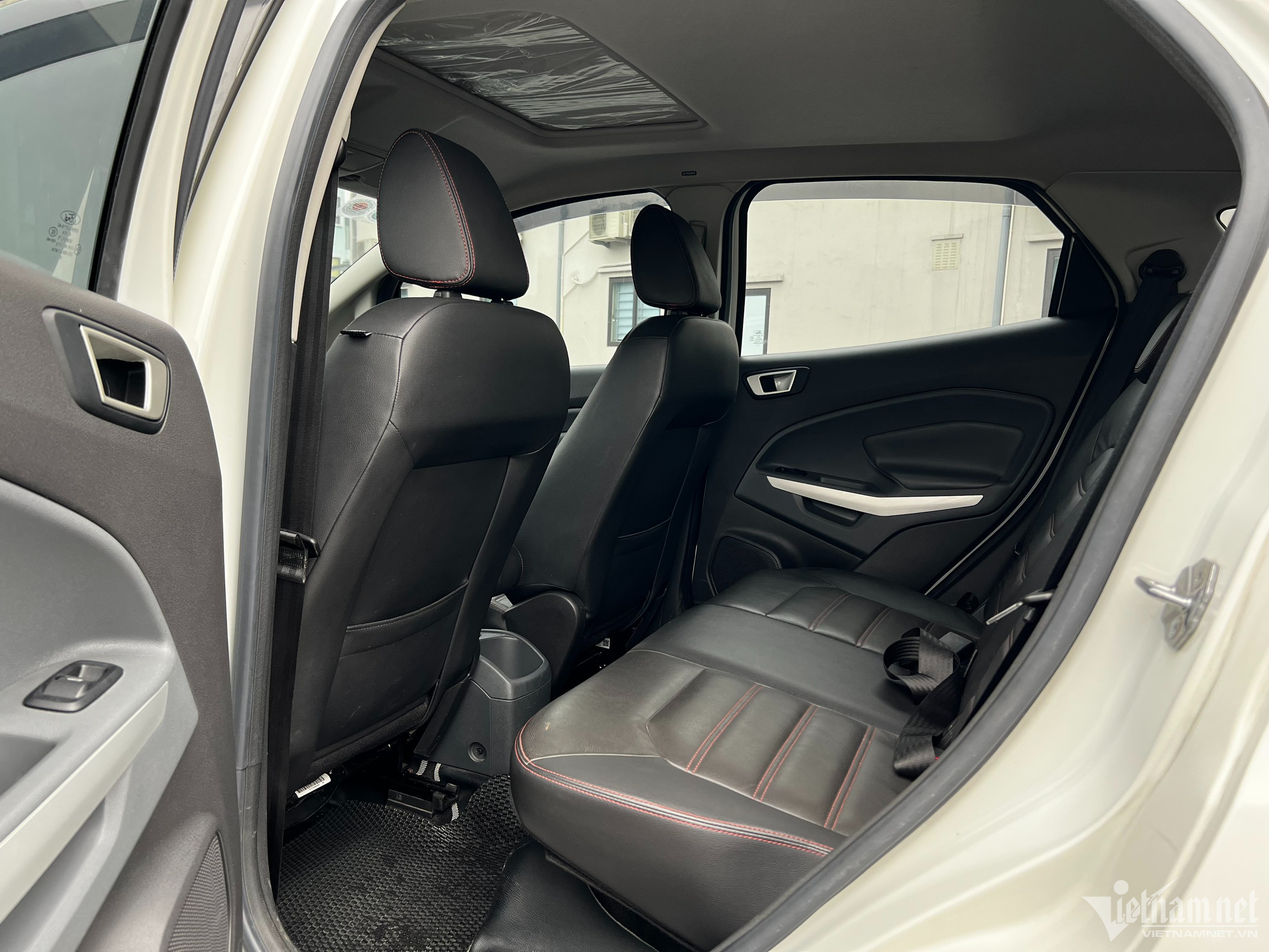 Bên trong, khoang nội thất EcoSport Titanium Black Edition không có sự khác biệt so với bản Titanium. Sau 5 năm sử dụng, các chi tiết vẫn khá mới do đặc điểm của vật liệu bọc da, nhựa sơn đen hay nhựa sần có tuổi thọ khá tốt. Ưu điểm bên trong của dòng xe này là nhiều vị trí chứa đồ tiện dụng, lên tới 20 điểm, phần để hàng phía sau xe cũng rất linh hoạt, có thể ngửa hàng ghế thứ 2 hoặc gập lại để thêm chỗ chở hàng. Với các ghế sau gập gọn lại sát hàng ghế trước, thể tích không gian chứa đồ của xe tăng lên thành 1.145 lít, nhưng vẫn thua đối thủ Hyundai Kona (có thể gập ghế thành không gian 1.296 lít chứa đồ).