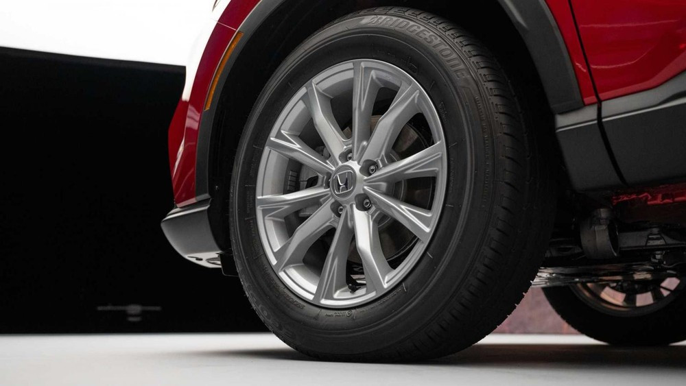 Honda CR-V 2023 có tổng cộng 4 phiên bản là EX, EX-L, Sport và Sport Touring. Hai bản thấp là EX và EX-L có lưới tản nhiệt phía trước màu đen bóng với đường viền mạ crôm và la-zăng 18 inch 10 chấu tiêu chuẩn.
