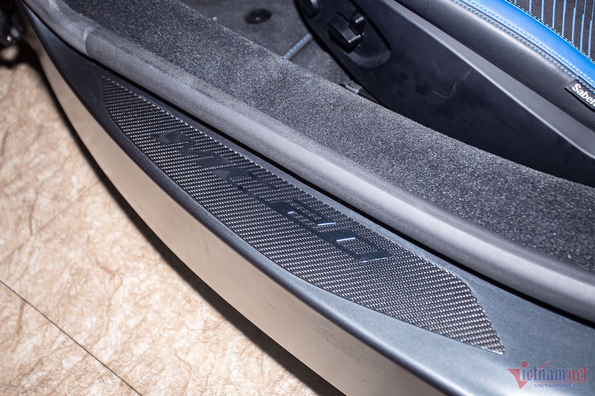Bên cạnh khu vực bệ điều khiển trung tâm, một số chi tiết là tùy chọn sợi carbon như lẫy chuyển số sau vô-lăng, ốp bảng đồng hồ, bậc cửa.