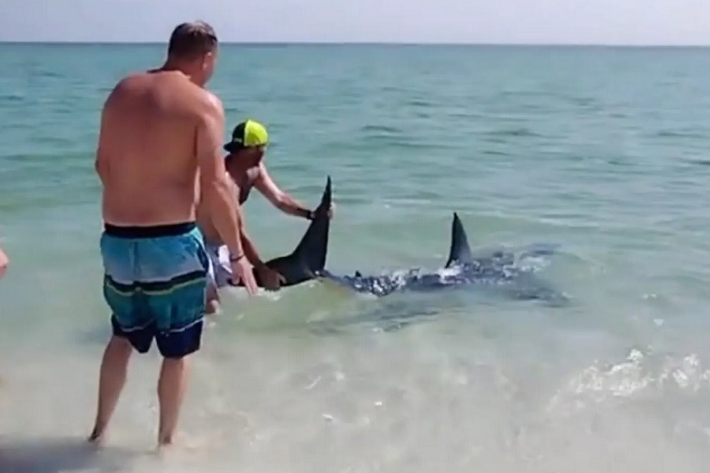 Theo đoạn video được tờ Bưu điện New York công bố gần đây, một nhóm du khách đang đi dạo trên bãi biển Pensacola thuộc bang Florida, Mỹ thì phát hiện một con cá mập mako vây ngắn đang vùng vẫy do mắc cạn. Lập tức, nhiều người đàn ông trong nhóm trên đã tiến đến và cố gắng giải cứu con cá mập.