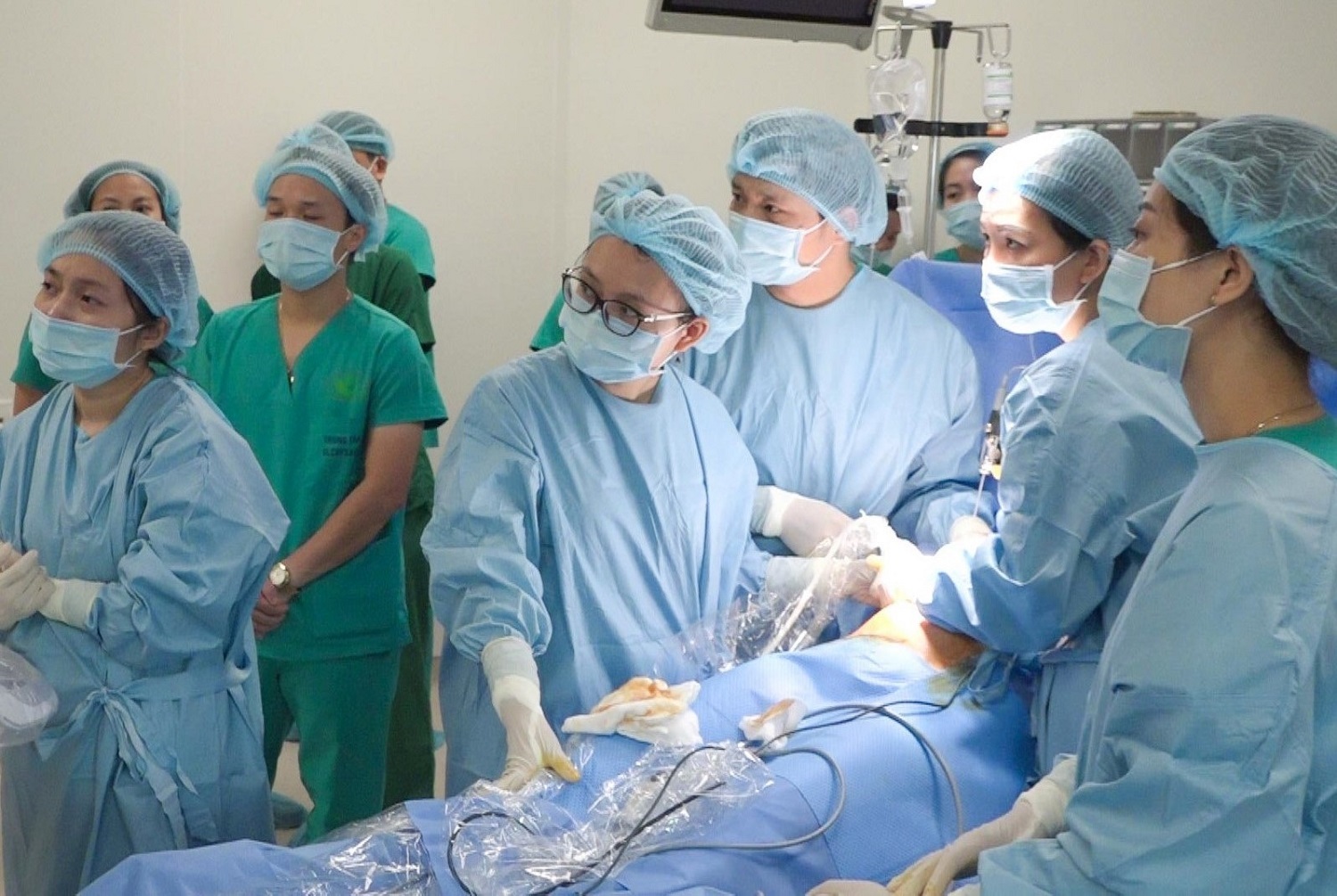 | Bác sĩ Ánh cùng các cộng sự thực hiện một ca can thiệp bào thai |