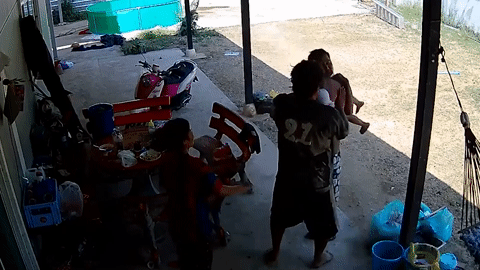 Khoảnh khắc một bé trai 2 tuổi rơi từ tầng 4 xuống giá treo quần áo ở tầng 2 và may mắn được giải cứu kịp thời.