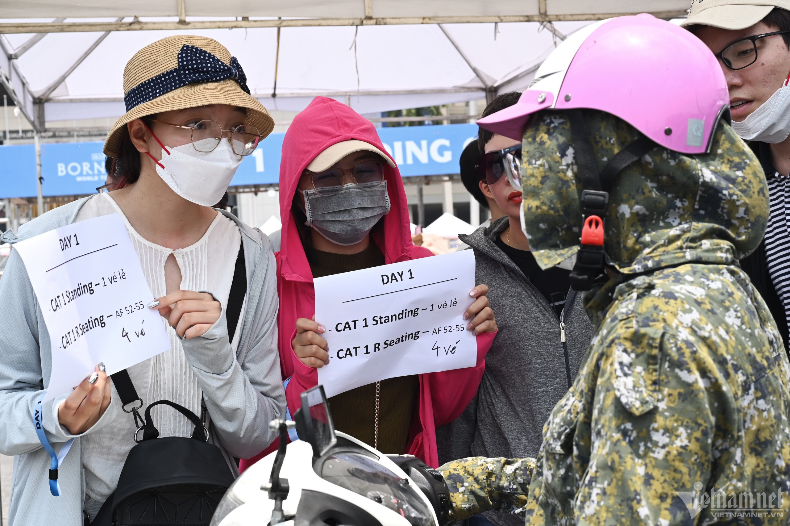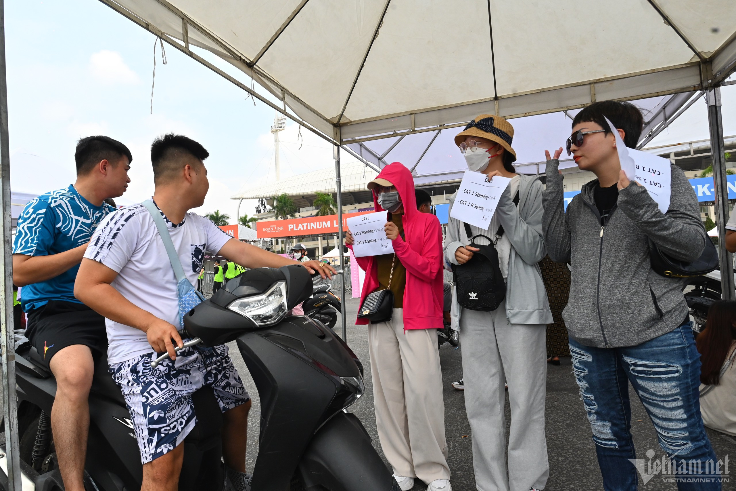 Nguyễn Quang Dũng có 2 vé VIP muốn bán lại cho người khác với giá 20 triệu đồng. Cậu nhờ bạn bè ra bán hộ, rao cả trên mạng xã hội nhưng không ăn thua. “Tình hình vé có vẻ ế ẩm. Tôi đến đây từ sáng, thấy nhiều bạn cũng rơi vào cảnh như mình”, Dũng chia sẻ.