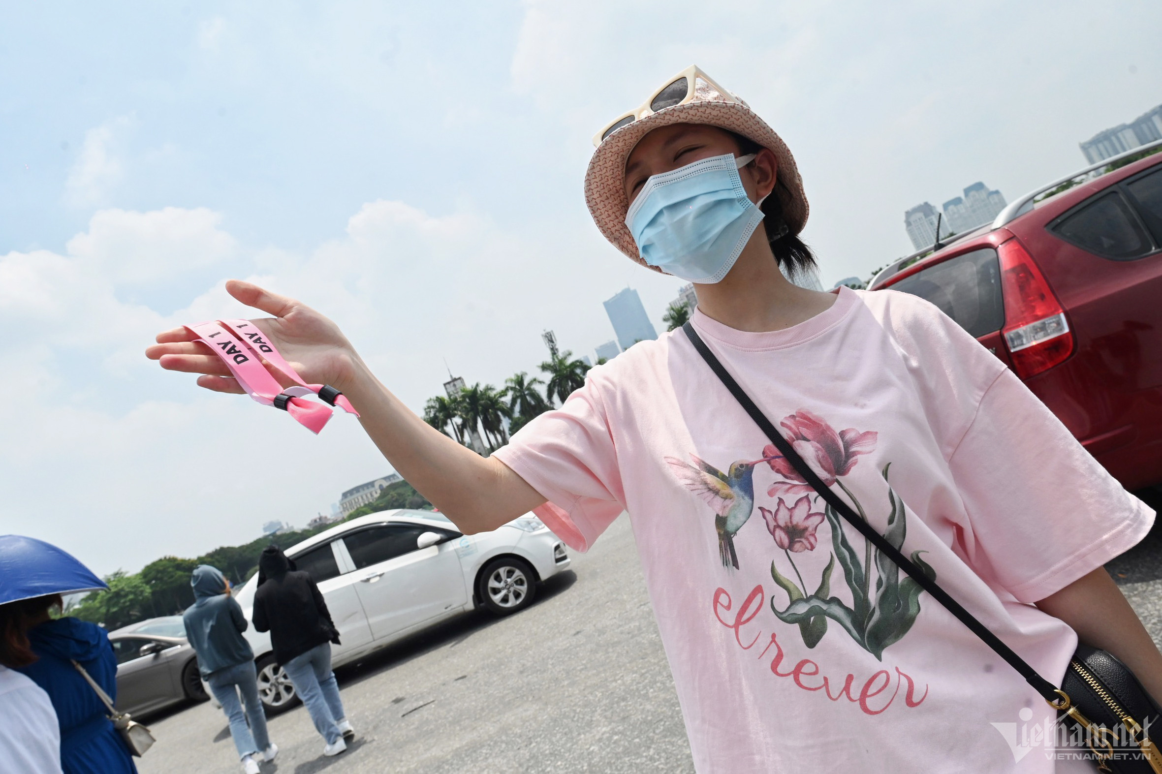 Hà Nội sáng nay nhiệt độ tuy chỉ 33 độ C nhưng vẫn khiến nhiều nam thanh nữ tú mệt mỏi vì phải xếp hàng chờ đợi.