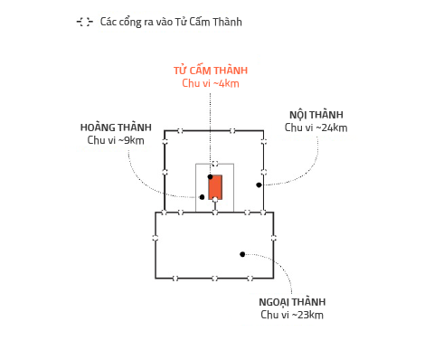 Khu phức hợp Tử Cấm Thành được coi là "trái tim" của Bắc Kinh. Cung điện có tường bao quanh hình chữ nhật được bao bọc bởi hai con đường vành đai hình vuông nhằm khoanh vùng và bảo vệ nội cung. Khi Bắc Kinh liên tục được mở rộng trong những năm qua, những con đường vành đai hình vuông vẫn có hướng tỏa ra từ Tử Cấm Thành. Ngay cả ngày nay, đường vành đai thứ bảy - nối Hà Bắc với Thiên Tân để tạo thành siêu đô thị được gọi là "Jingjinji" - vẫn giữ nguyên hình dạng hình vuông ban đầu, với Cố cung ở trung tâm của cả thành phố.