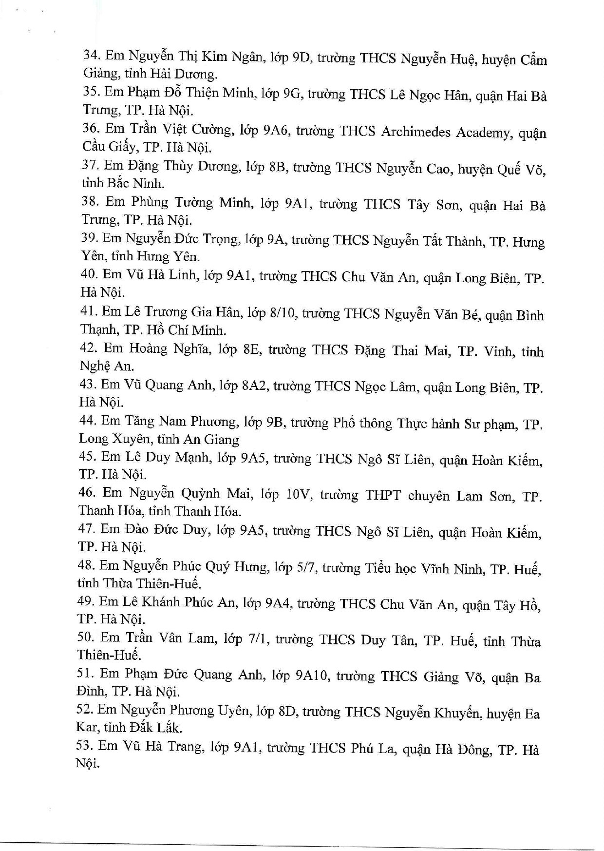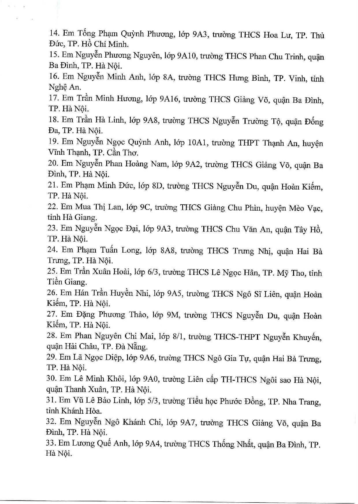 Dưới đây là danh sách những thí sinh đoạt giải: