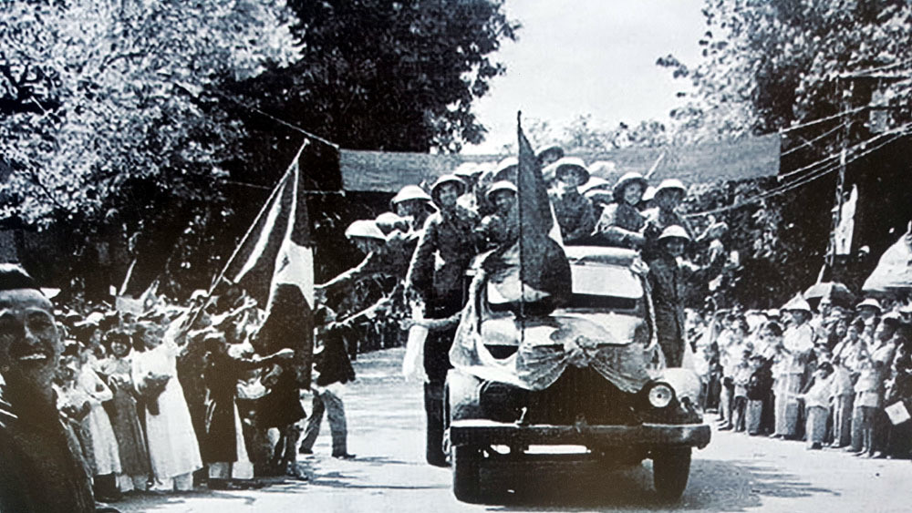 Đúng 16h30 ngày 9/10, khi toán lính Pháp cuối cùng rút khỏi cầu Long Biên, cả Hà Nội tràn ngập cờ hoa sắc áo. Băng vải các màu căng ngang đường với những khẩu hiệu cắt rất đẹp: “Hồ Chí Minh muôn năm”, “Nước Việt Nam Dân chủ Cộng hòa muôn năm”, “Hoan hô đoàn quân chiến thắng trở về"... Cổng chào đăng đèn, hoa mọc lên khắp các phố.