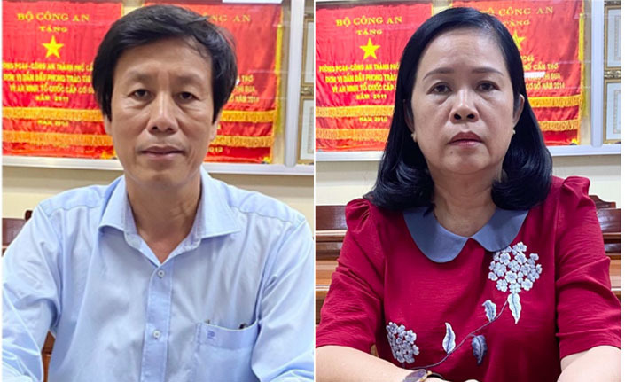 | Ông Cao Minh Chu bà Bùi Thị Lệ Phi tại cơ quan công an. Ảnh: Bộ Công an |