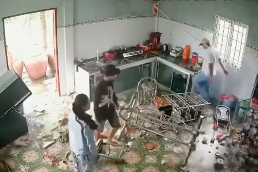 Camera an ninh trong nhà ghi rõ cảnh tượng gần chục thanh niên đập phá tan hoang ngôi nhà chỉ có cụ bà gần 80 tuổi ở.
