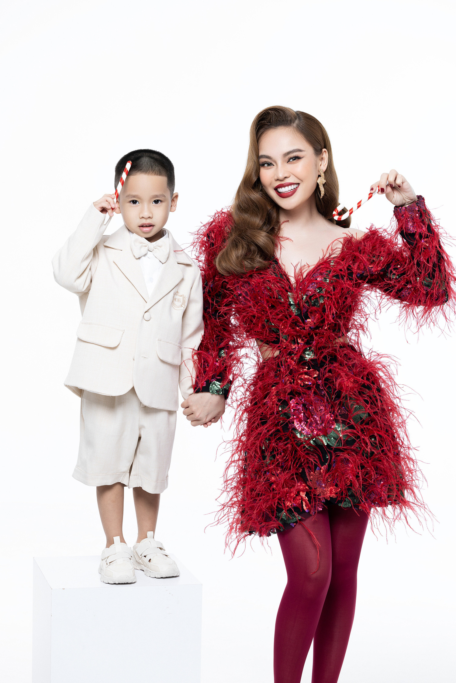 Giang Hồng Ngọc và con trai lần đầu chụp bộ ảnh chung. Hai mẹ con chụp chủ đề Giáng sinh, ghi lại những khoảnh khắc đáng nhớ bên nhau. Ban đầu, buổi chụp hình diễn ra khá suôn sẻ, đến concept thứ 2 thì bé chán chụp, không hợp tác nữa.Sau khi sang Mỹ sinh con và tổ chức đám cưới hồi năm 2019, Giang Hồng Ngọc đều đặn đi diễn tại các đêm nhạc, sự kiện nhưng kín tiếng hơn. Chị tự nhận cuộc sống của mình bình lặng so với nhiều đồng nghiệp trong showbiz.Theo Giang Hồng Ngọc, chị hát hay hơn kể từ khi lấy chồng, sinh con. Ngày xưa, chị thường được nhận xét là "giọng tốt, nội lực nhưng thiếu chiều sâu và trải nghiệm". "Khi có gia đình nhỏ, tôi trưởng thành hơn, làm gì cũng suy nghĩ thấu đáo, dĩ nhiên hát cũng nhiều cảm xúc hơn. Gần đây, nhiều người nói thích nghe Giang Hồng Ngọc hát hơn xưa", ca sĩ kể.Hôn nhân êm ấm và sự ủng hộ của chồng con giúp Giang Hồng Ngọc hoạt động nghệ thuật thêm sung sức. Dù vậy, chị vẫn dành phần nhiều thời gian trong ngày để nuôi và dạy con nhỏ. Chị thấy may mắn khi có mẹ và chị ruột luôn ở bên giúp đỡ.Giang Hồng Ngọc luôn tự hào về bé Cà Rốt. Cậu bé 4 tuổi lành tính, hiểu chuyện và sống rất tình cảm. "Ai gặp Cà Rốt xong cũng thương bé, tôi hạnh phúc lắm. Tôi muốn con trai được phát triển tự nhiên như những đứa trẻ khác", ca sĩ cho hay. Trong bộ ảnh, Giang Hồng Ngọc chọn phong cách gợi cảm như thường lệ. Chị diện các thiết kế tông đỏ và đen, phù hợp với không khí Giáng sinh. Mẹ một con 33 tuổi khoe đường cong một cách kín đáo, tinh tế.