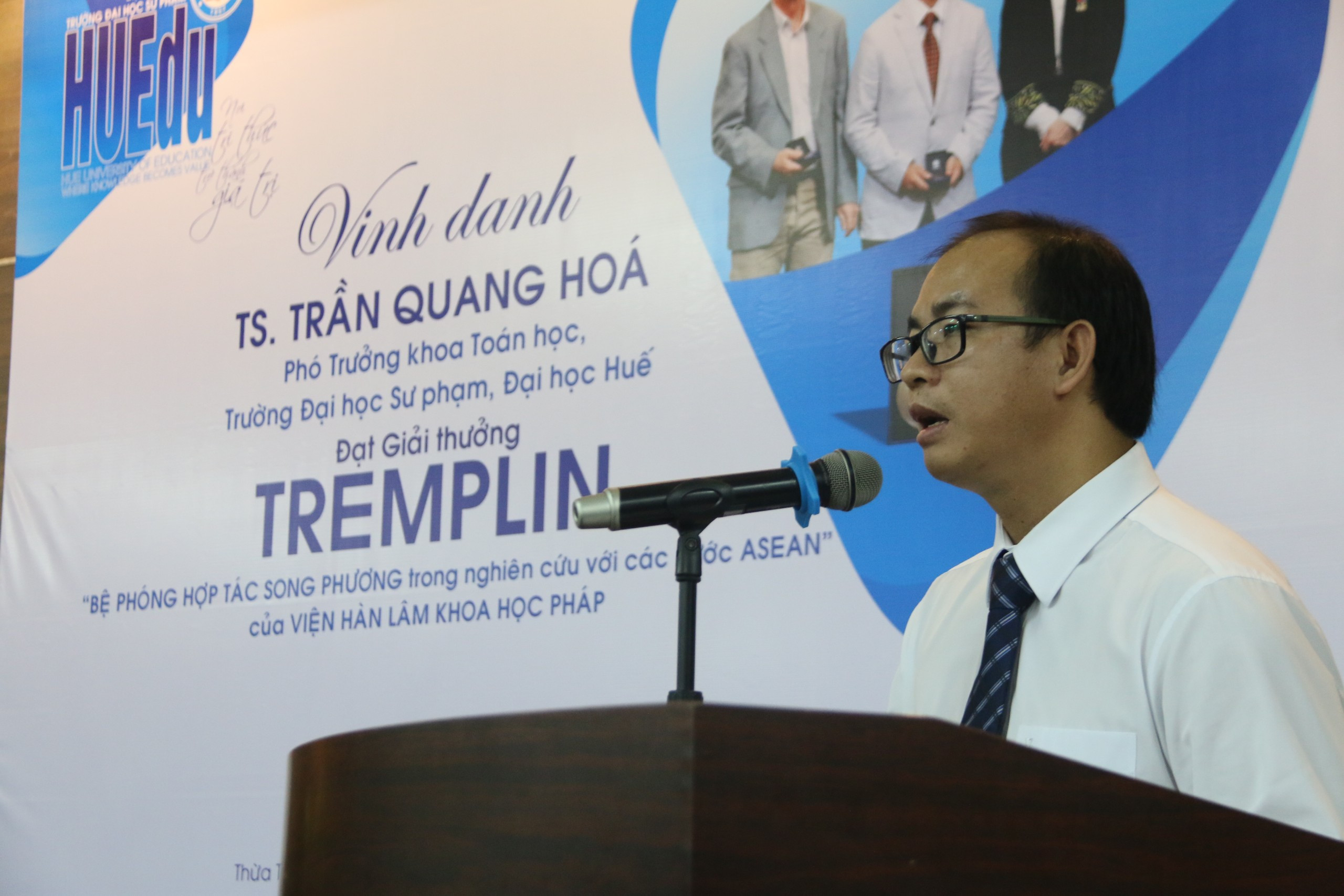 Chiều 26/10, Trường ĐHSP - Đại học Huế tổ chức buổi Vinh danh TS Trần Quang Hóa - Phó Trưởng Khoa Toán học đạt Giải thưởng Tremplin “Bệ phóng hợp tác song phương trong nghiên cứu giữa Pháp với các nước ASEAN” của Viện Hàn lâm khoa học Pháp.