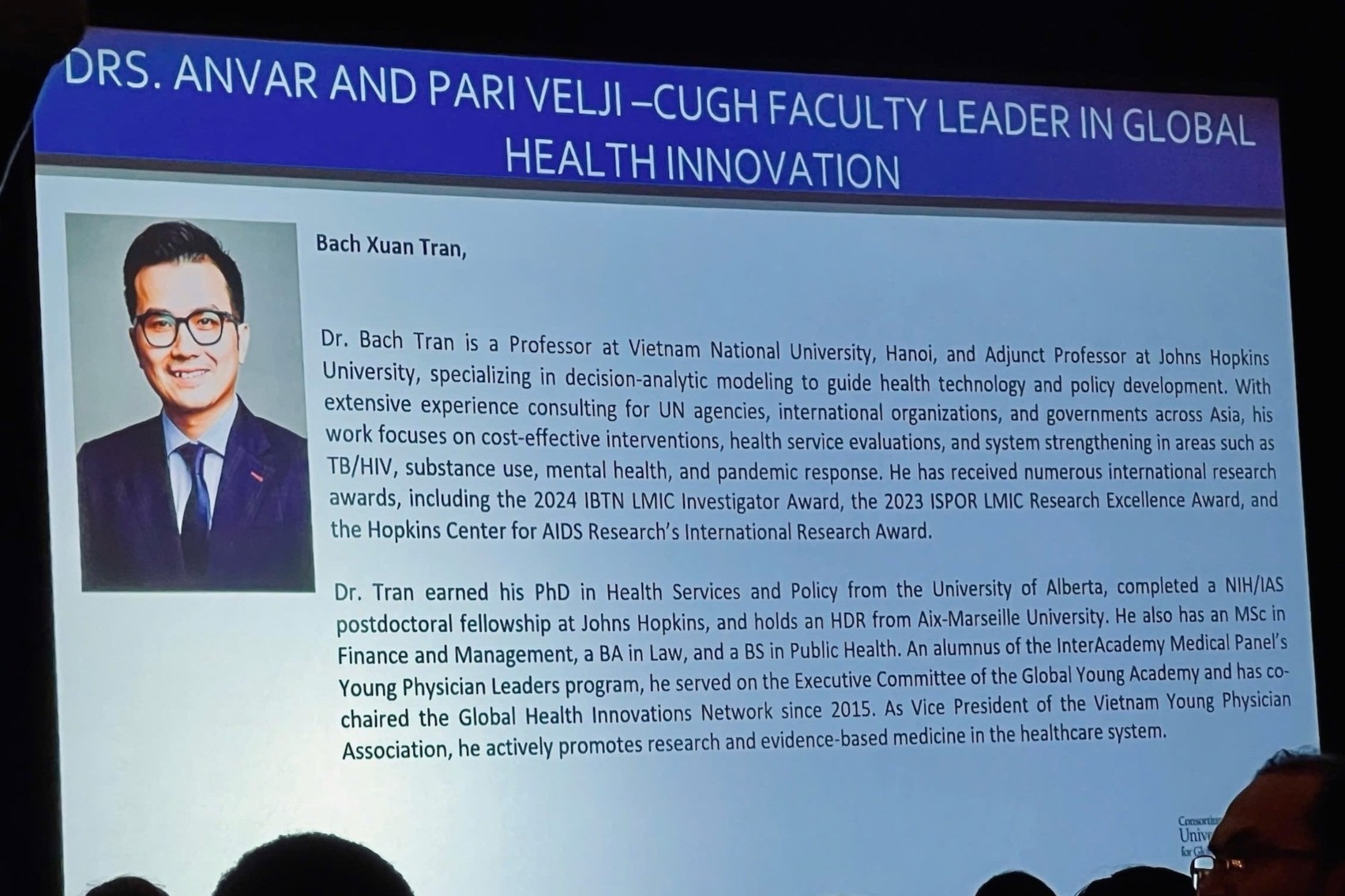 Trước đó, năm 2023, Giáo sư Bách cũng được Hiệp hội lớn nhất thế giới về đánh giá kinh tế y tế ISPOR trao Giải thưởng Nghiên cứu xuất sắc.