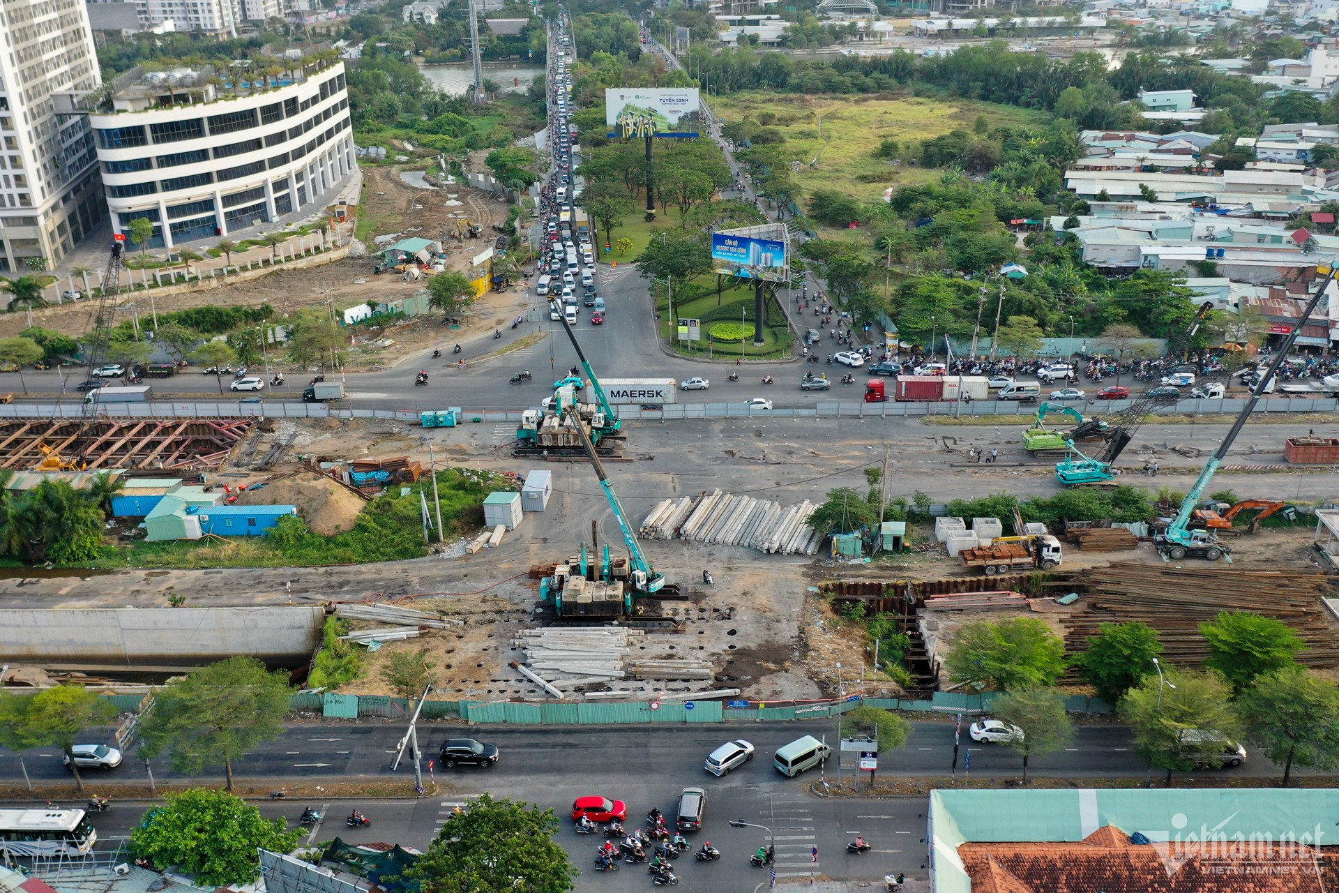 Khu vực rào chắn dài 505m, rộng 75m. Các phương tiện được tổ chức đi vòng qua giao lộ này trong thời gian thi công, muốn vượt qua nút giao phải đi vào đường Nguyễn Văn Linh và quay đầu ở các nút giao gần đó như giao lộ đường Nguyễn Phan Chánh, Phạm Văn Nghị hay vị trí trước cầu Tư Dinh.