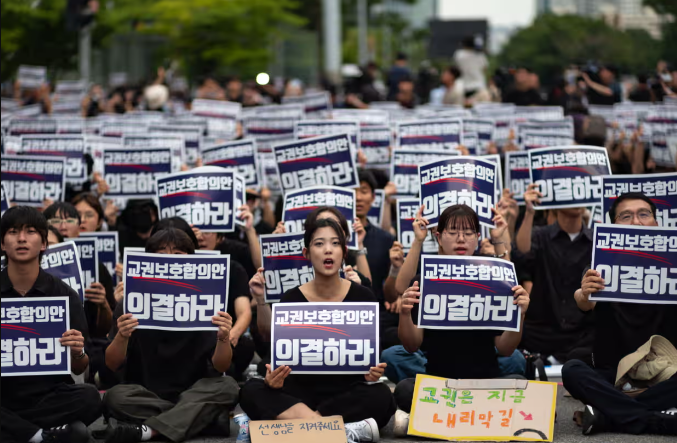 Ngày 7/9/2023 vừa qua, hàng nghìn giáo viên trên khắp Hàn Quốc đã xuống đường biểu tình, bày tỏ sự thất vọng ngày càng tăng trước mức độ đối xử ngược đãi họ phải nhận từ cả phụ huynh và học sinh, bao gồm cả việc bị buộc tội “lạm dụng trẻ em” khi kỷ luật học sinh. Những giáo viên này đang kêu gọi các nhà chức trách và nhà trường bảo vệ tốt hơn cho họ.