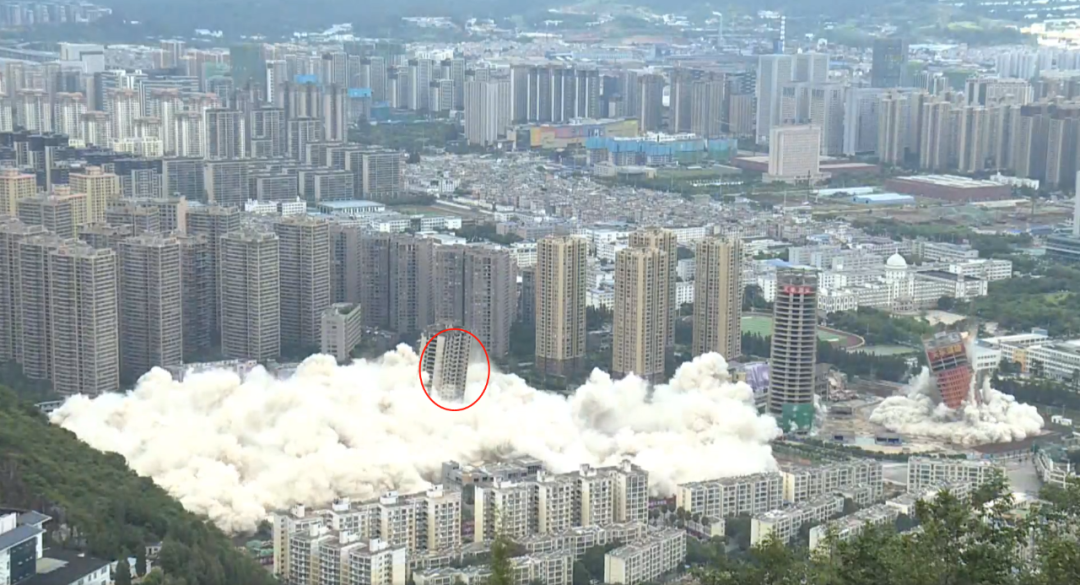 | Việc phá huỷ 15 toà nhà cao tầng bằng một lần nổ là lần đầu tiên diễn ra ở Vân Nam và hiếm thấy ở Trung Quốc |