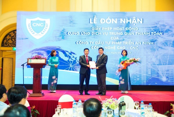 Ngày 5/4, Ngân hàng Nhà nước Việt Nam đã trao Giấy phép Hoạt động cung ứng Dịch vụ Trung gian thanh toán cho Công ty Đầu tư Phát triển An ninh Công nghệ cao (CNC).
