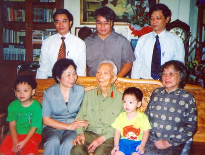Đại tướng Võ Nguyên Giáp với cháu nội và con gái Võ Hồng Phúc năm 1994. |