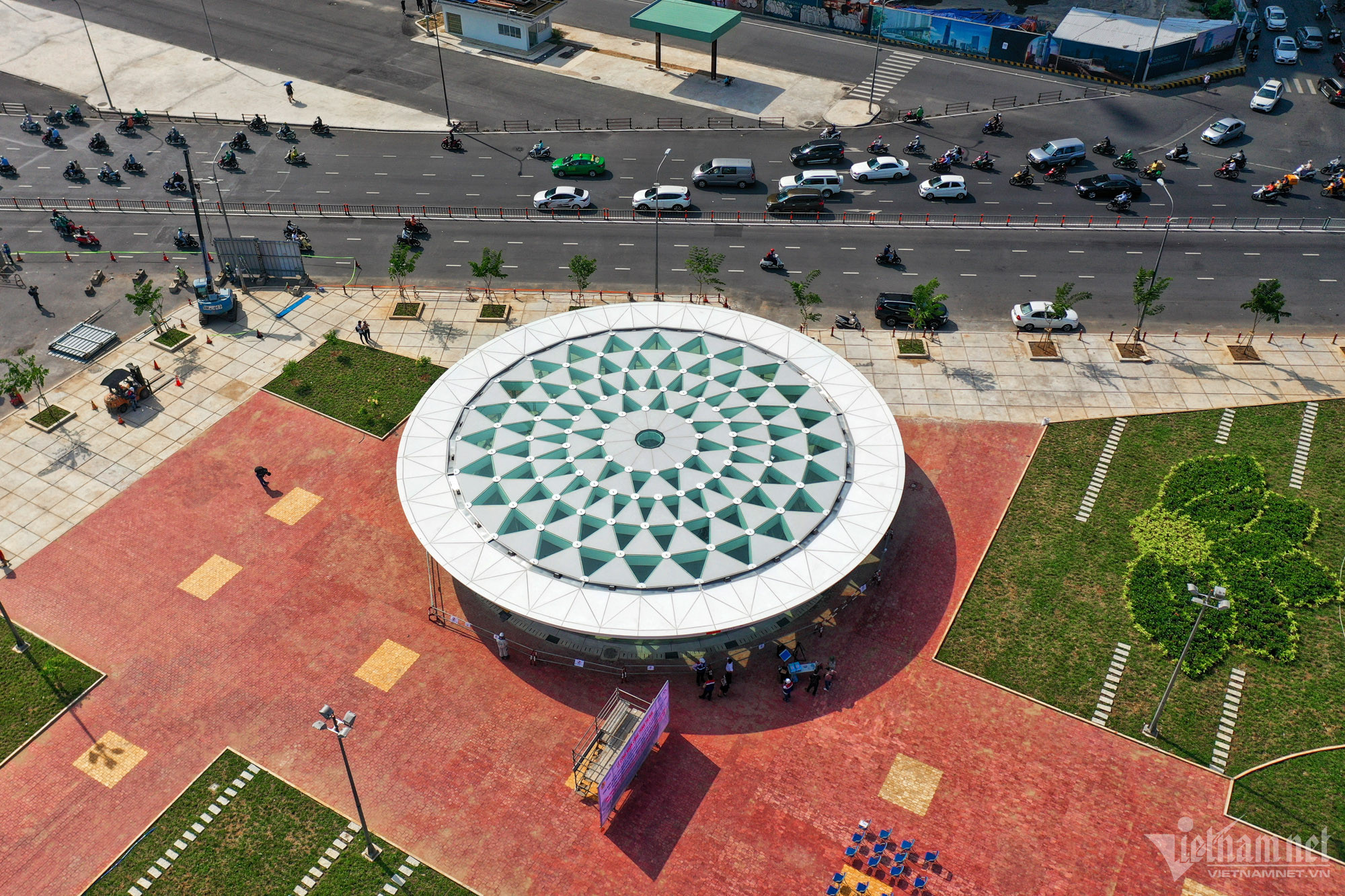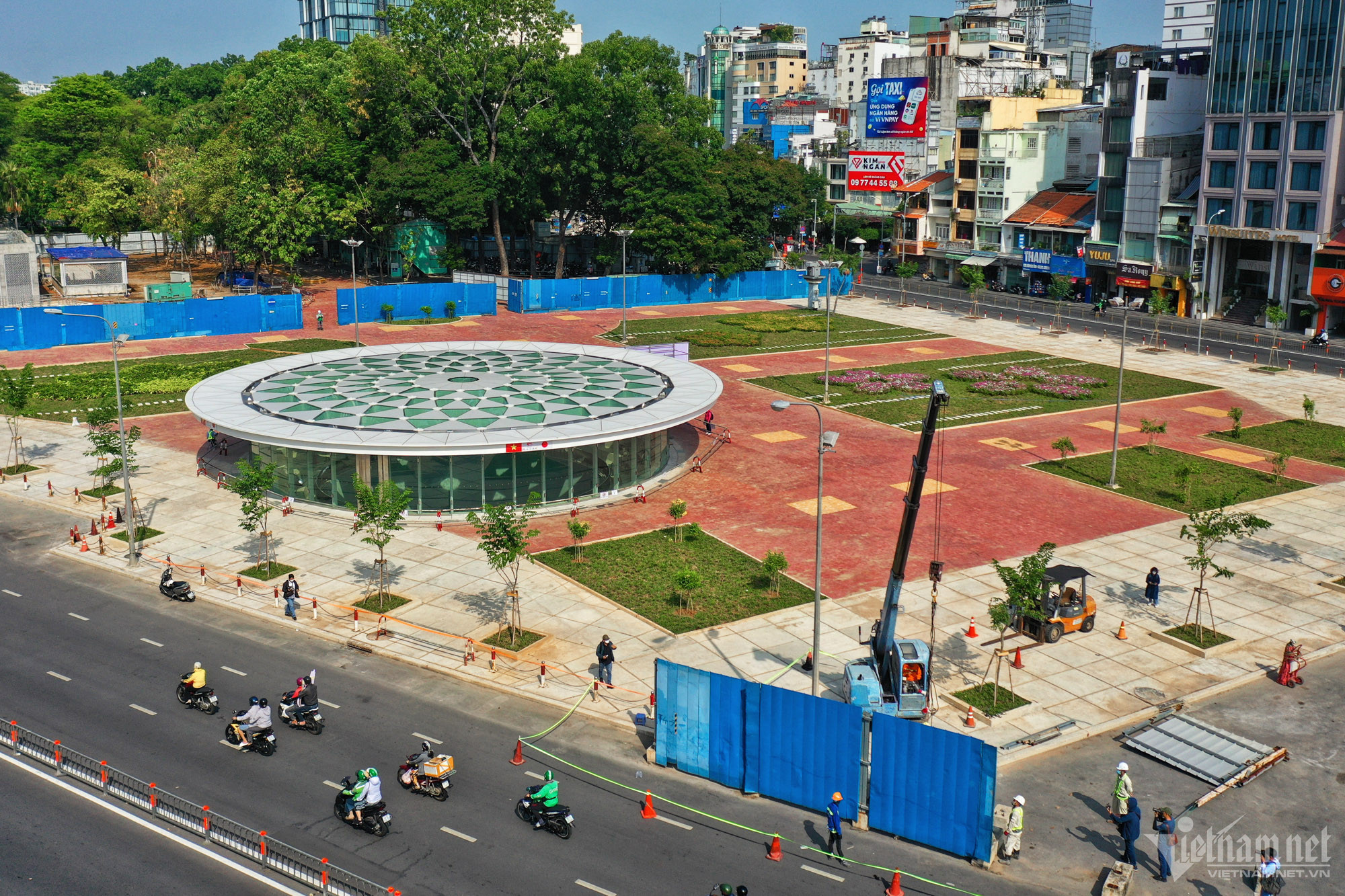 Công tác tái lập mặt bằng xung quanh giếng trời hình hoa sen khổng lồ cơ bản đã hoàn thành. Người dân và du khách có thể đi dạo tham quan trung tâm thành phố qua khu vực nhà ga Bến Thành và "check-in" địa điểm mới này.