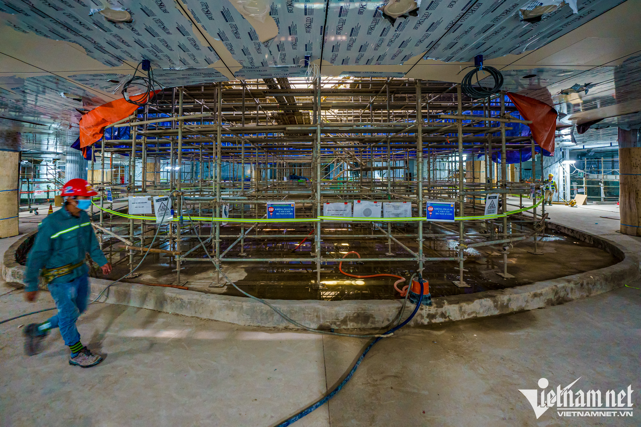 Phần tâm của giếng trời cũng được lát kính. Dự kiến đến Quý 2/2023, các công tác xây dựng kiến trúc, lắp đặt thiết bị cơ điện của gói thầu CP1a (ga Bến Thành) hoàn tất và tiến tới thử nghiệm, vận hành sau đó khoảng 5-6 tháng.