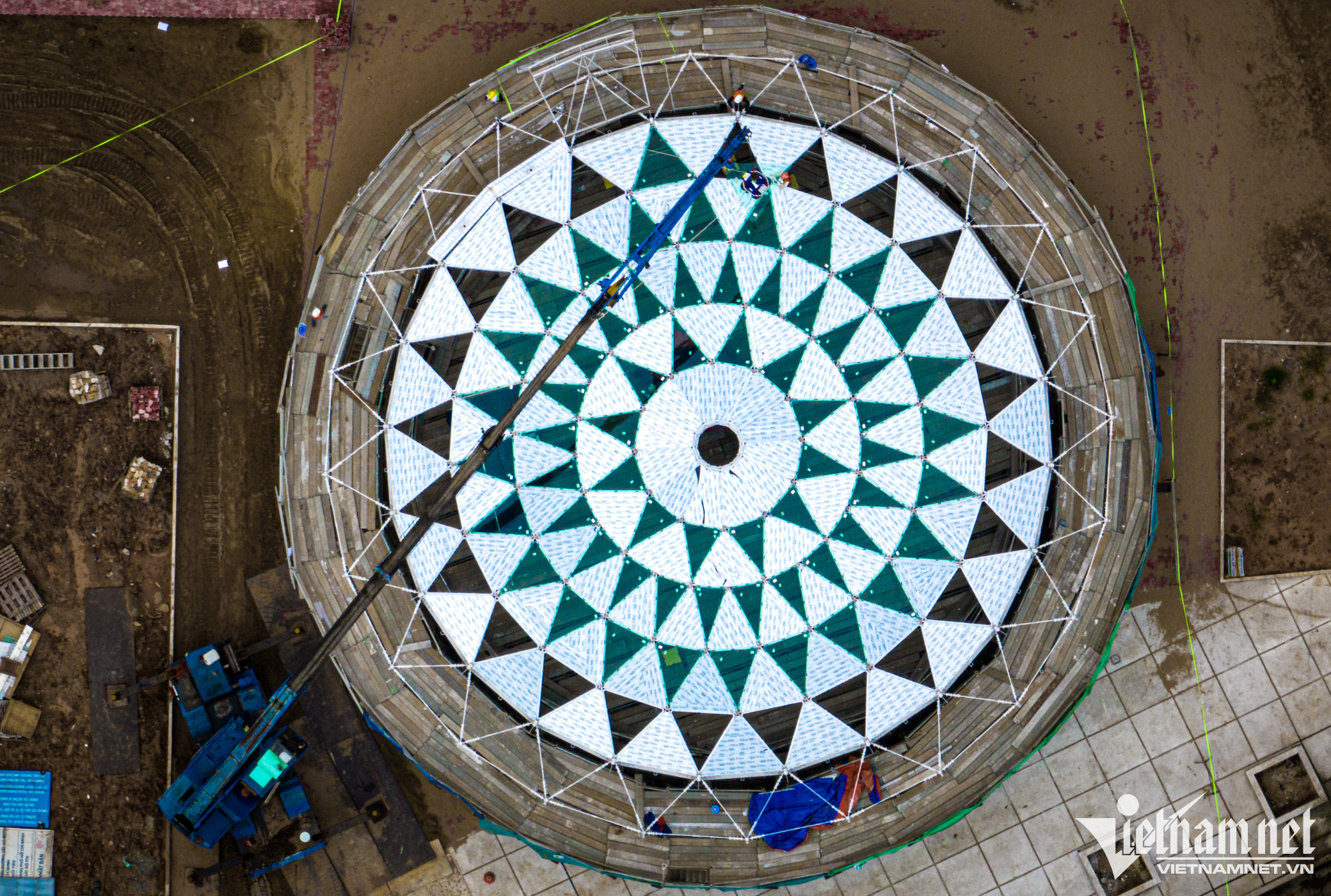 Với kết cấu vòm lớn, việc thi công khá khó khăn. Càng lắp vật liệu lên mái, mái sẽ càng lún xuống, do vậy các chuyên gia, kỹ sư phải giám sát gắt gao, tính toán kỹ lưỡng để ghép chính xác với nhau.