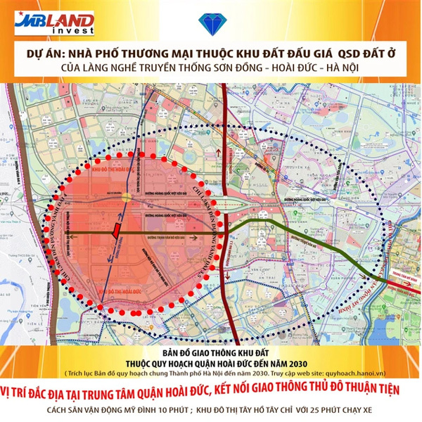 Nằm trong tổng thể quy hoạch hạ tầng của huyện Hoài Đức, dự án Sơn Đồng Center sở hữu vị trí đắc địa ngay mặt đường tỉnh lộ 422, tại trung tâm xã Sơn Đồng, huyện Hoài Đức có tổng diện tích dự án hơn 2,5ha, quy mô 150 căn shophouse của chủ đầu tư HTL, thành viên của Chủ đầu tư nổi tiếng Geleximco, đồng thời được phát triển bởi MBLand Invest, với khả năng siêu kết nối tới các khu vực lân cận. Dự án đón đầu quy hoạch đường Trịnh Văn Bô kéo dài chạy qua, tuyến đường huyết mạch từ Hoài Đức đi Mỹ Đình là tiềm năng tăng giá to lớn mà dự án có được.