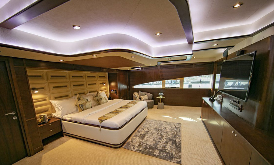 Trên chiếc siêu du thuyền Stardom 3 tầng với giá thuê 20.000 USD/đêm, du khách sẽ được các bữa ăn sang trọng từ các đầu bếp đạt tiêu chuẩn sao vàng Michelin, có bàn ghế ngoài trời, 5 phòng ngủ cao cấp, quầy bar trên tàu, khu vực tắm nắng trên boong.